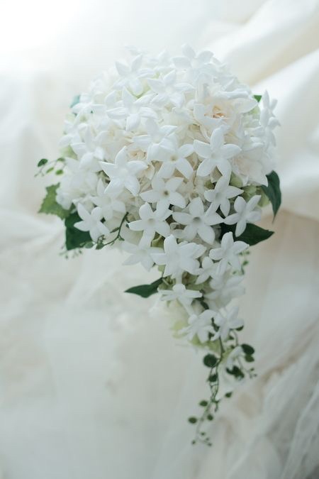 ウェディングの憧れの「ジューンブライド」には純白のジャスミンのご注文が多く、