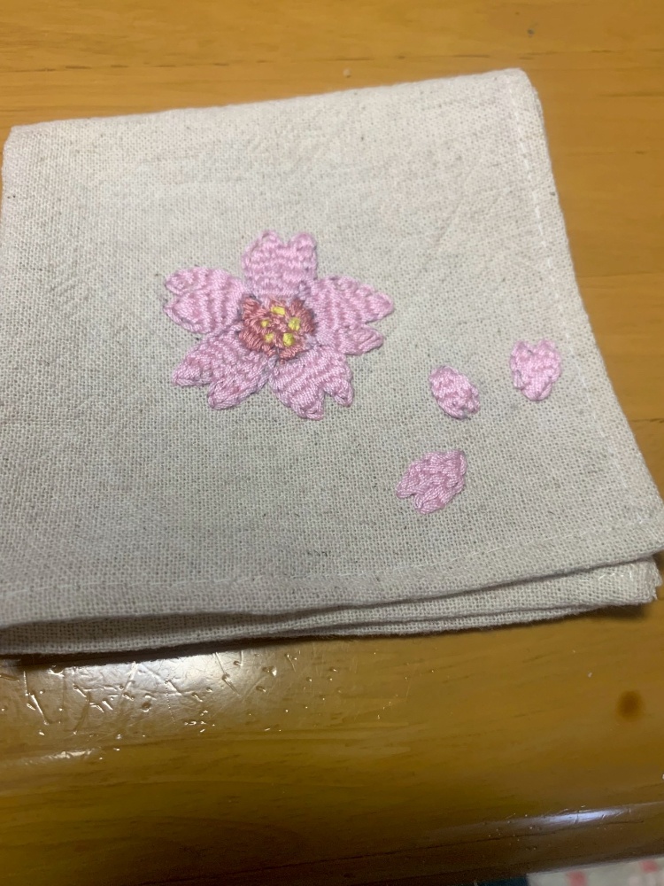 そのハンカチたちの中に【さくら】の刺繍があります。