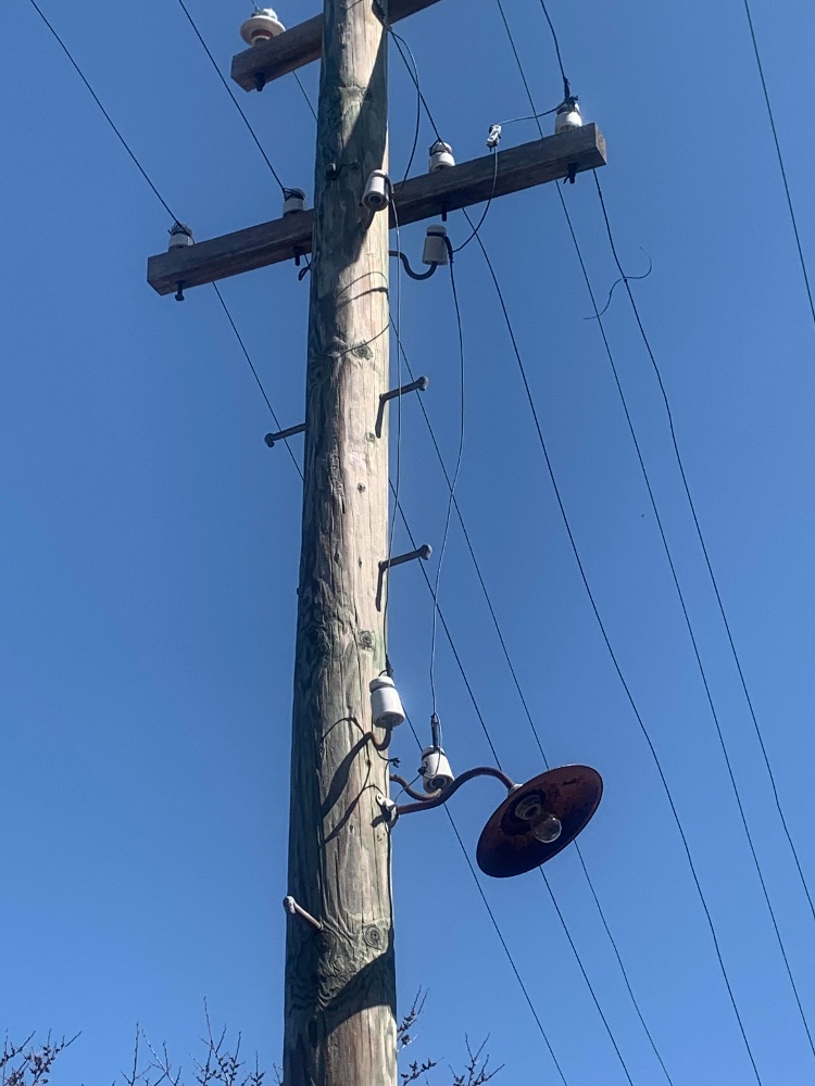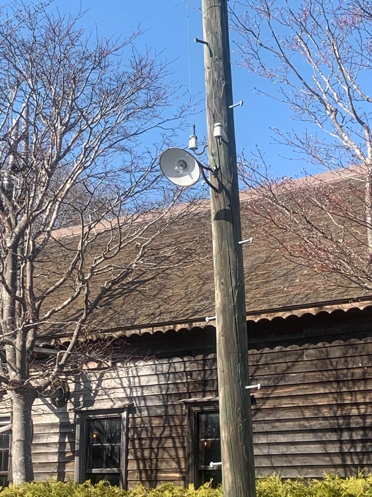 今日のテーマの【街灯】ですが、建物の移築と合わせて当時の電線や電柱、照明器具まで移築されています。