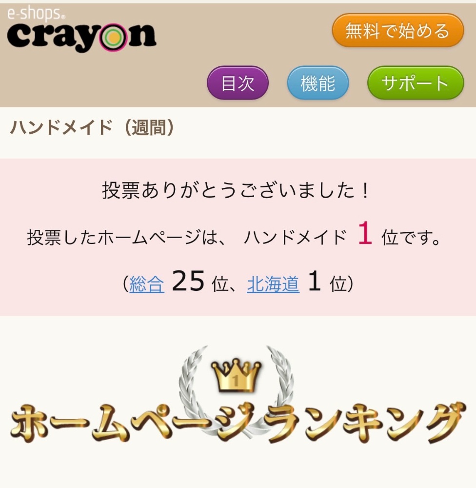 8月中旬から少しずつ順位を上げてきましたが、ついにハンドメイド1位、北海道1位、総合25位になりました。
